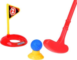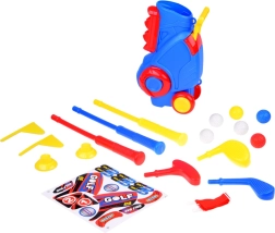 Das Set enthält 3 bunte Schläger mit unterschiedlichen Köpfen für einfachere Schläge, 6 Bälle, 2 Tees, 2 Löcher mit Fähnchen sowie einen Ständer/Bag. Kinder trainieren Zielen, Krafteinschätzung und Konzentration, während sie aktive Unterhaltung drinnen wie draußen genießen.
