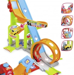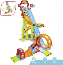 Starte das Rennen mit einem blitzschnellen Abschuss und sieh zu, wie die Autos durch den großen Looping sausen. Eine tolle Portion Geschwindigkeit und Spaß für kleine Rennfahrer.