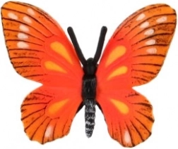 Dieses dekorative Schmetterlingsmodell, inspiriert vom Monarchfalter, besticht durch kräftig orangefarbene Flügel mit schwarzer und weißer Zeichnung. Dank realistischer Details wie Flügeladern, Fühlern und Körperform wirkt es sehr glaubwürdig und eignet sich für Kinderzimmer, Bastelarbeiten, Schaufenster sowie als Lehrmittel.