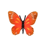 Das kräftig orangefarbene Flügelpaar mit schwarzen und weißen Akzenten ahmt das Aussehen eines lebendigen Schmetterlings naturgetreu nach und wertet jede Dekoration auf.