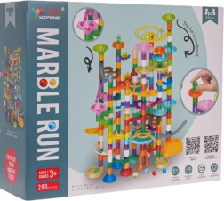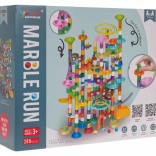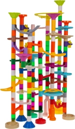 Diese große und bunte Murmelbahn ist so gestaltet, dass sie von Kindern ab 3 Jahren gespielt werden kann, aber sicherlich auch ältere Kinder anspricht. Das Spiel besteht darin, die Bahnen selbst zu bauen und dann zu beobachten, wie sich die Murmeln durch die verschlungenen Tunnel bewegen. Sie können der beigefügten Bildanleitung folgen oder Ihre eigene Konstruktion erstellen.