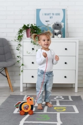 Dieses bunte Holzspielzeug unterstützt die Entwicklung der motorischen Fähigkeiten und die Hand-Fuß-Koordination durch Ziehen.