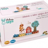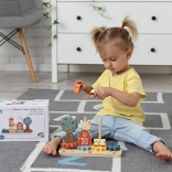 Das Spielzeug umfasst verschiedene Tier- und Baumformen, die bunt gestaltet sind, um die Aufmerksamkeit der Kinder zu erregen und ihre Kreativität im Spiel zu fördern.