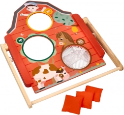 Genießen Sie Stunden voller Spaß mit diesem wunderschön gestalteten Holzspiel mit Bauernhofmotiv. Geeignet sowohl für Innen- als auch Außenspiele, trainiert das Spiel Hand-Augen-Koordination und lehrt Kinder Zählen und Punkte sammeln. Einfache Montage dank eines Gestells, das Stabilität während des Spiels bietet.