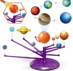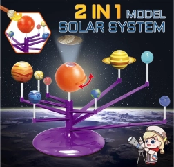 Mini-Modell Sonnensystem 2in1 ist ein interaktives, kreatives und lehrreiches Spielzeug, das es Kindern ermöglicht, die Planeten zusammenzubauen und eigenständig zu bemalen. Enthält eine orangefarbene Kugel, die die Sonne darstellt, mit einem Projektor, der die Planeten an die Decke projiziert.