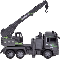 Dieser hochwertige Kran ist aus robustem Kunststoff gefertigt und mit vielen attraktiven Details ausgestattet, die Kinder begeistern werden. Das Spielzeug bietet verschiedene Funktionen, die die Spielmöglichkeiten erweitern: