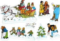 Figuren, Schlitten, Bäumchen und winterliche Freuden ergeben eine reichhaltige 3D-Szene. Jedes Element verleiht der Krippe zusätzlichen Zauber und Authentizität.