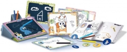 Leichter Kinderrucksack mit buntem BLUEY-Print, der das gesamte Set fasst und das Tragen erleichtert. Ideal zum Kreativsein auf Reisen und zu Hause.