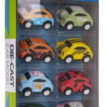 Dieses farbenfrohe Set aus 8 Mini-Autos kombiniert Robustheit, Design und einfache Handhabung. Die Metallkarosserie mit modernen Motiven und Gummireifen gewährleistet eine lange Lebensdauer sowie hervorragende Haftung auf glatten Oberflächen. Der Rückziehantrieb sorgt dafür, dass die Autos nach kurzem Zurückziehen flott nach vorne sausen.