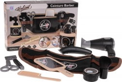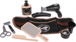. | Gut ausgestattetes Friseur-Set mit Gürtel für Kinder ab 3 Jahren. Das Set besteht aus 10 Teilen und wurde aus hochwertigsten Materialien hergestellt, die eine lange Nutzungsdauer gewährleisten. Das Set enthält: Gürtel, Rasierer, Haartrockner, elektrischen Rasierer, Schere, Kamm, Spiegel, Bürste, Flasche mit Kosmetikpumpe, Schaumdöschen. Mit einem so gut ausgestatteten Set kann Ihr Kind das Schneiden, das Modellieren von Bärten oder Frisuren nachspielen. Der Gürtel kann über die Hüften gehängt werden, sodass alle Elemente des Sets hineinpassen. Der Föhn hat eine Beleuchtung und Trockengeräusche. Er wird mit 2 x AAA 1,5V Batterien betrieben (nicht im Lieferumfang enthalten).