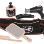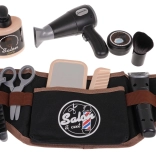 Gut ausgestattetes Friseur-Set mit Gürtel für Kinder ab 3 Jahren. Das Set besteht aus 10 Teilen und wurde aus hochwertigsten Materialien hergestellt, die eine lange Nutzungsdauer gewährleisten. Das Set enthält: Gürtel, Rasierer, Haartrockner, elektrischen Rasierer, Schere, Kamm, Spiegel, Bürste, Flasche mit Kosmetikpumpe, Schaumdöschen. Mit einem so gut ausgestatteten Set kann Ihr Kind das Schneiden, das Modellieren von Bärten oder Frisuren nachspielen. Der Gürtel kann über die Hüften gehängt werden, sodass alle Elemente des Sets hineinpassen. Der Föhn hat eine Beleuchtung und Trockengeräusche. Er wird mit 2 x AAA 1,5V Batterien betrieben (nicht im Lieferumfang enthalten).