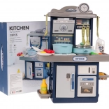 Zum Lieferumfang gehört eine breite Palette an Zubehör – ein Topf mit Deckel, eine Pfanne, Geschirr, Besteck und eine farbenfrohe Auswahl an Lebensmitteln, die das sensorische Spiel und die Entwicklung der Feinmotorik fördern.