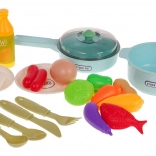 Topf, Pfanne, Teller, Besteck und eine bunte Auswahl an Lebensmittel-Zubehör bieten Kindern alles, was sie zum Spielen als Koch benötigen.