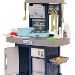 Diese interaktive Küche besteht aus hochwertigem Kunststoff in lebendigen Farben und bietet Kindern ein authentisches Kocherlebnis. Das Kochfeld mit Licht und Sound, der funktionale Wasserhahn mit Wasserkreislauf (nach Betätigen der Pumpe) sowie die zu öffnenden Türen von Backofen und Kühlschrank verwandeln das Kinderzimmer in ein kleines kulinarisches Studio.