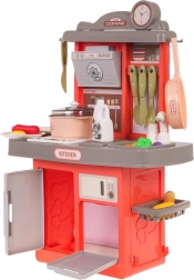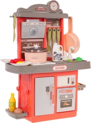 Der Wasserhahn mit Wasserkreislauf (Pumpe) erhöht die Authentizität, während das umfangreiche Zubehör – Geschirr, Utensilien und Lebensmittel – Kindern erlaubt, ihr eigenes „Menü“ zu kreieren. Die Küche wird mit 3× AA 1,5 V betrieben (nicht im Lieferumfang enthalten).