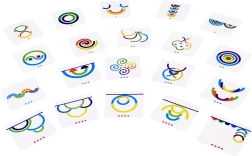 Das Set enthält 20 beidseitige Karten mit Aufgaben in unterschiedlichen Schwierigkeitsgraden. Die einzelnen Karten sind auf verschiedene Altersstufen und Fähigkeiten zugeschnitten, was die schrittweise Entwicklung des Kindes fördert. Das Kind kann verschiedene Muster und Strukturen schaffen, was besonders die Kreativität und das eigenständige Denken unterstützt.