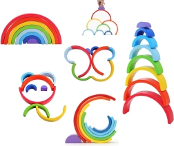 Die Blöcke ermöglichen auch das Bauen eigener Kreationen wie bunte Regenbögen, Blumen oder Tiere. Die Größen der Blöcke reichen von 1,5 cm bis 8,7 cm, was die Spielmöglichkeiten erheblich erweitert.