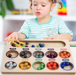 Holz-Montessori-Bildungs-Mosaik - bunte Kugeln und Sortierer