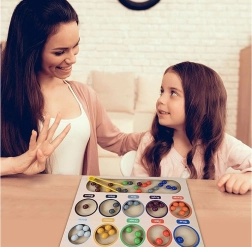 • Förderung der Feinmotorik und der Hand-Auge-Koordination durch das Manipulieren der Kugeln.