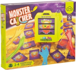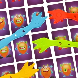 „Fang die Monster“ ist ein dynamisches Spiel für 2–4 Spieler ab 3 Jahren. Ein Spieler zeigt das Monsterbild in der Kunststoff-„Kamera“, und alle versuchen, so schnell wie möglich die passende Karte auf dem Tisch zu finden. Wer sie zuerst erkennt, muss sie blitzschnell mit der farbigen Klatsche schnappen – und erhält einen Punkt!