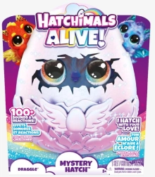 Erlebt die Magie des Schlüpfens mit dem neuen Hatchimals-Drächlein! Dieses niedliche Haustier schlüpft aus dem Ei mit Effekten aus magischem Nebel, regenbogenfarbenen Lichtern und mehr als 100 Geräuschen und Reaktionen. Gebt ihm Liebe, klopft an das Ei, streichelt und wiegt es – der Drache antwortet, leuchtet und bereitet sich auf das große Schlüpfen vor. Im Inneren verbirgt sich eine von zwei Figuren – es ist also immer eine Überraschung und Spaß vom ersten Moment an.