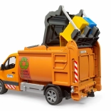 Im Lieferumfang enthalten sind 2 Mülltonnen; das Modell ist mit BWORLD-Figuren kompatibel und ergänzt die BRUDER-Stadtsammlung perfekt.