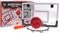 Das Set enthält alles, was Sie für Basketball benötigen: Tafel, Ring, Netz, Ball und Pumpe.