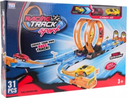Rennbahn mit scharfen Schleifen bietet Kindern ein aufregendes Rennerlebnis. Dank der bunten Schleifen und der einfachen Einrichtung fördert sie Kreativität und Bewegungskoordination.