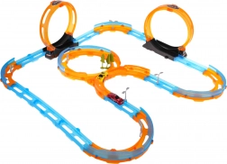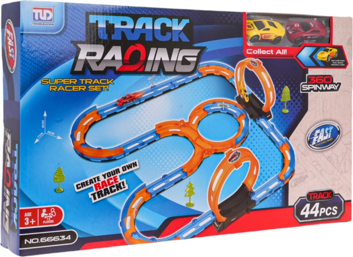 Wir präsentieren die Rennstrecke mit Hochgeschwindigkeitsfahrten, die ein großartiges Spielerlebnis für Kinder und begeisterte Erwachsene bietet. Die montierte Strecke misst ca. 71 cm x 76 cm x 23 cm und ist ideal für Indoor-Spaß. Im Set finden Sie 44 Baukomponenten, die problemlos verbunden werden können, um erstaunliche Rennrunden mit fünf Loops und anspruchsvollen Kurven zu schaffen.