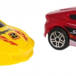 Die Plastikautos verfügen über einen Rückziehmotor, was ihnen ermöglicht, mit voller Geschwindigkeit loszufahren.
