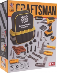 Das Kinderspielzeug-Set mit Rucksack enthält alles, was ein kleiner Handwerker benötigt. Umfangreiche Ausstattung umfasst 28 Elemente, darunter Maßband, Hammer, Zangen, Schraubenschlüssel und vieles mehr.