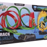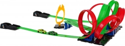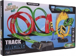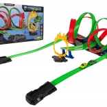 Erleben Sie mega Spaß mit der Mega Wyrzutnia Kinder Rennstrecke Feuerstrecke. Dieses Set kombiniert zwei parallele Rennstrecken, die doppeltes Rennen ermöglichen. Die Strecke ist mit Segmenten für rasante Geschwindigkeiten und fesselnden 360°-Loops für aufregende akrobatische Stunts ausgestattet.