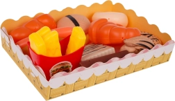 Croissant, Kekse, Schokolade, Waffel, Hotdog, Pommes und Ketchup – Kinder können ihre Lieblingsleckereien servieren und das Teilen üben.