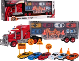 Entdecken Sie Spielspaß unterwegs mit dem großen LKW, der in seinem transparenten Auflieger 6 bunte Autos und ein Set mit Verkehrszeichen transportiert. Die hinteren Türen des Aufliegers lassen sich öffnen und bilden eine Auffahrrampe für ein reibungsloses Ausfahren der Fahrzeuge. Nach dem Abkoppeln wird der Auflieger zu einem Koffer mit bequemem Tragegriff, sodass Kinder ihren Fuhrpark überallhin mitnehmen können.