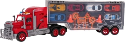 Der transparente Auflieger fasst 6 Autos und Zubehör, sodass jedes Teil seinen Platz hat und immer griffbereit ist.