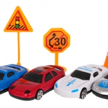 Enthalten sind Autos, Verkehrszeichen und Kegel – ideal zum Üben von Verkehrssituationen und für kreatives Spiel.