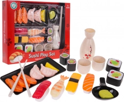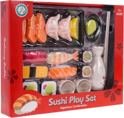 Im Set ist alles enthalten, was man zum Servieren benötigt – von Tabletts und Schälchen bis hin zu Essstäbchen sowie verschiedenen Sushi-, Sashimi- und Zubehörteilen. Teile mit Klettverschluss ermöglichen realistische „zusammenstellen und servieren“-Szenarien, die Kinder lieben.