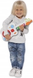 Lichteffekte sorgen bei jedem Spiel für Spaß und Energie. Die Stromversorgung erfolgt durch 3 R6 / AA 1,5V Batterien, die nicht im Lieferumfang enthalten sind. Die Gitarre ist für Kinder ab 1,5 Jahren geeignet und hat die Maße 17 x 40 x 5 cm.