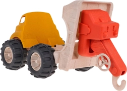 Der Kran ist aus umweltfreundlichem Bioplastik gefertigt. Abgerundete Formen und hochwertige Verarbeitung gewährleisten sicheres Spielen bereits ab 18 Monaten.