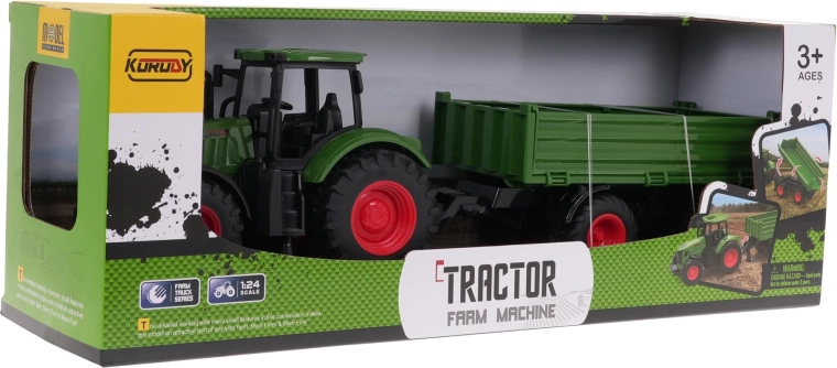 Traktor mit Anhänger im Maßstab 1:24, für Kinder ab 3 Jahren. Der Traktor wurde sehr realistisch nach einer echten landwirtschaftlichen Maschine mit detaillierten Details nachgebildet. Er besteht aus hochwertigstem Kunststoff in lebendigen Farben. Große Gummireifen sorgen für guten Grip. Der Anhänger des Traktors kann abgekoppelt werden; außerdem lassen sich die Seitenwände absenken und die Heckklappe anheben. .. Funktionen des Traktors: . - geeignet für Kinder ab 3 Jahren, .- hergestellt aus hochwertigsten Materialien, .- gefertigt im Maßstab 1:24, .- bewegliche Elemente: Anhänger (hoch, runter), - abgesenkte Seitenwände und angehobene Heckklappe, .- Gummireifen, .- realistische Nachbildung, .- bewegliches Freilaufrad. . |