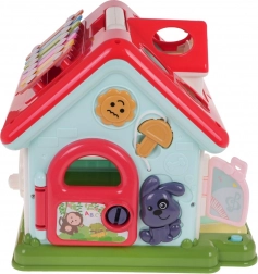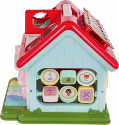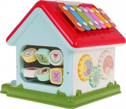 Das Dach verbirgt ein Xylophon für die ersten musikalischen Versuche und einen Formensortierer mit 6 farbigen Bausteinen. Kinder trainieren Feinmotorik, Hand-Auge-Koordination und logisches Denken. Die robuste Ausführung aus hochwertigem Kunststoff in lebendigen Farben fällt sofort ins Auge und dank des klappbaren Tragegriffs lässt sich das Häuschen leicht transportieren.