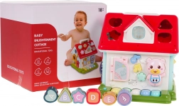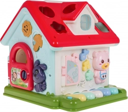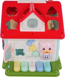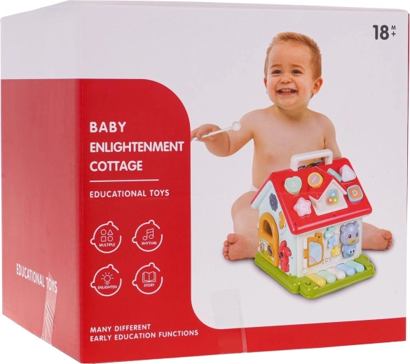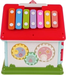 Entdecken Sie eine spielerische Möglichkeit, Kinder mit Musik, Formen und Farben vertraut zu machen. Das interaktive Häuschen kombiniert ein Miniklavier mit 5 Tasten (Zahlen, Tiere und ihre Geräusche, Melodien, Töne Do–So), ein leuchtendes Fenster und sprechende/spielende Elemente mit Tiermotiven. Jede Seite bietet eine andere Aktivität – von aufschließbaren Türen mit Schlüssel über Zahnräder bis hin zu drehbaren Blöcken mit Buchstaben.