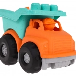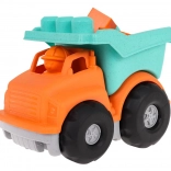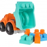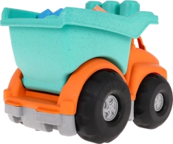 Der Kipper und die Bausteine bestehen aus robustem Bioplastik. Das Material ist umweltfreundlich und hat keine scharfen Kanten – ideal für kleine Kinder.