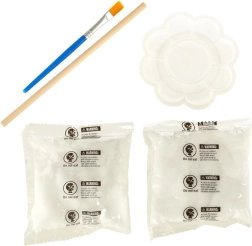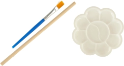 Drei Farben, Pinsel und Palette ermöglichen ein individuelles Design. Kinder fördern Fantasie, Farbgefühl und Feinmotorik.