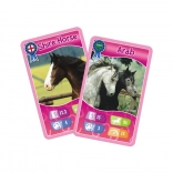 TOP TRUMPS – Pferde, Ponys und Einhörner ist ein rasantes Familienspiel, in dem Sie Rassen wie Connemara oder Islandpferd treffen. Jede Karte enthält Fotos, interessante Fakten und eine Reihe von Parametern zum Vergleichen. Ziel ist es, Kategorien-Duelle zu gewinnen und alle Karten der Mitspieler zu erobern.