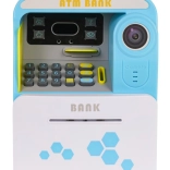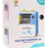 Der Geldautomat wird durch das Einstecken einer imitierten Debitkarte gestartet. Die Tasten 0–9 spielen fröhliche Geräusche und den Namen der Ziffer auf Englisch ab. Verfügbar sind Einzahlung, Abhebung, Kontostandprüfung und PIN-Änderung (werksseitig 000). Die imitierte Face ID mit Attrappen-Kamera und Lämpchen unter dem Display verstärkt das realistische Erlebnis. Stromversorgung: 3× AA 1,5 V (nicht im Lieferumfang enthalten).