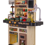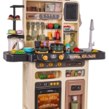 Diese geräumige Kinderküche verwandelt das Zimmer in eine kleine Gourmetwerkstatt. Kinder genießen realistische Details wie beleuchtete Kochfelder mit Brat- und Kochgeräuschen, Dampf aus einem der Brenner und einen Wasserhahn mit fließendem Wasser. Öffnen Sie den Backofen, lagern Sie Lebensmittel im Kühlschrank mit Wasserspender, drehen Sie an den Bedienknöpfen und schalten Sie die Dunstabzugshaube mit Musikpanel ein.
