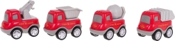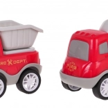 Kipper, Betonmischer, Kran und ein Auto mit Container fördern Fantasie, Koordination und Rettungseinsatz-Szenarien.