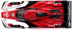 Die rot‑weiße Lackierung mit der Nummer 5 und Sponsorenlogos spiegelt den echten Rennspezialisten PORSCHE 963 originalgetreu wider.