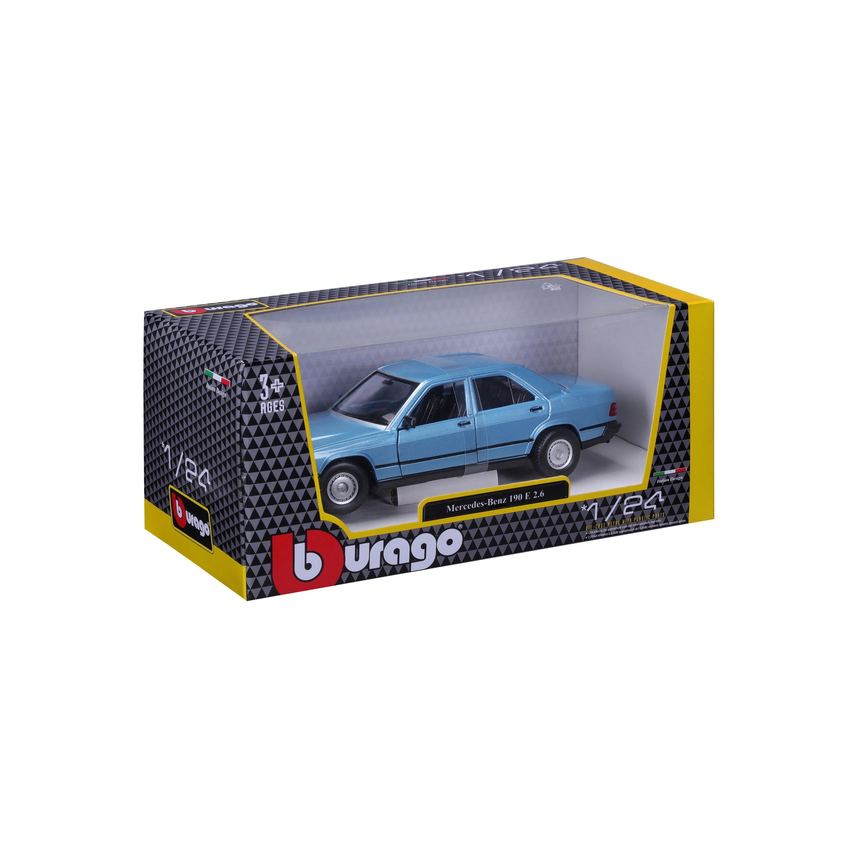 Entdecken Sie eine Youngtimer-Ikone: den MERCEDES-BENZ 190 E (1987) in elegantem Diamond Blue. Das Modell im Maßstab 1:24 bietet eine ausgewogene Kombination aus Sammlerqualität und hervorragender Präsentationswirkung – von den exakten Karosserielinien bis zum realistischen Kühlergrill und den Emblemen.